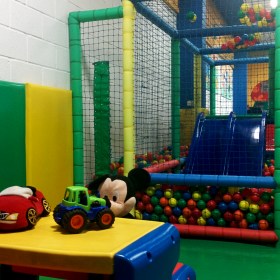 Una zona adaptada para los más «PEKES» con su piscina de bolas, peluches, balancines y ¡hasta un pequeño tobogán!