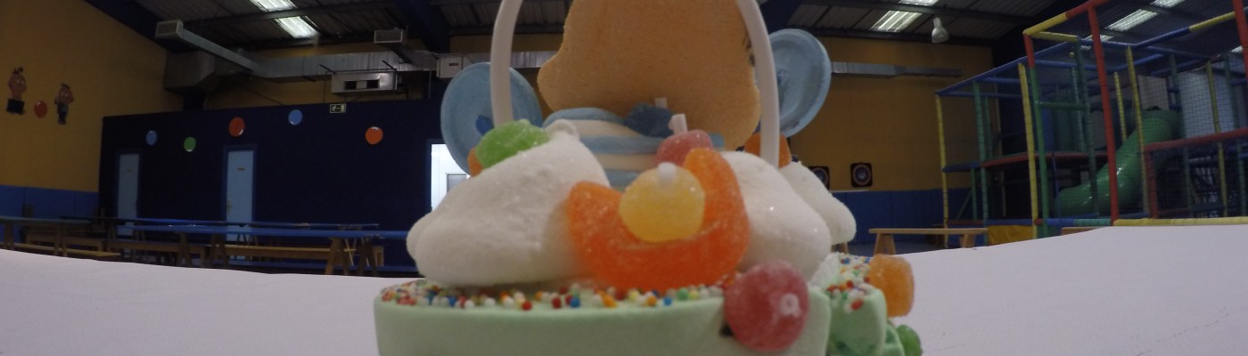 Esta es la tercera opción de nuestras tartas de cumpleaños; una pequeña torre llena de chuches.