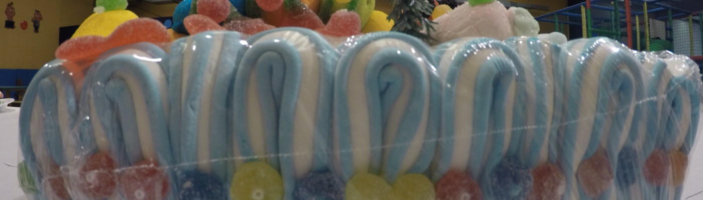 Esta es la segunda opción de nuestra oferta de tartas de cumpleaños; una tarta redonda llena de chuches.